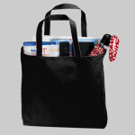 Recycled catch-all is great for shopping and school. 600-denier recycled material Made with 50% recycled material 28" color-matched handles Size: 14 3/4" x 13 3/4"